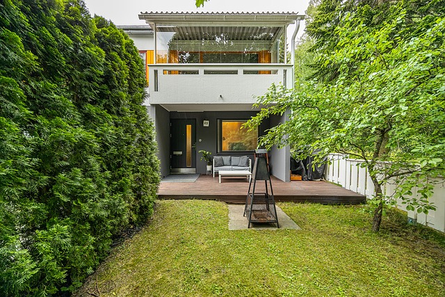 - Läpitalon huoneisto, josta näkymät metsään ja yhtiön pihalle.