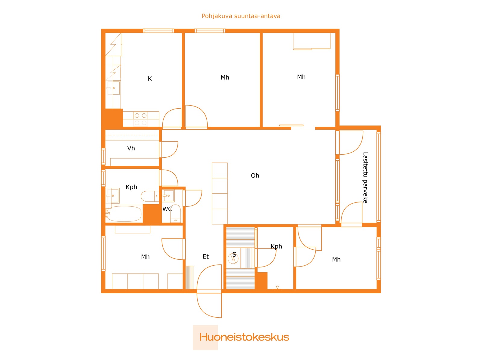 5h, k, s/kph, kph/wc, wc, vh, lasitettu parveke (yht. järj. muk. 5h+k+s).