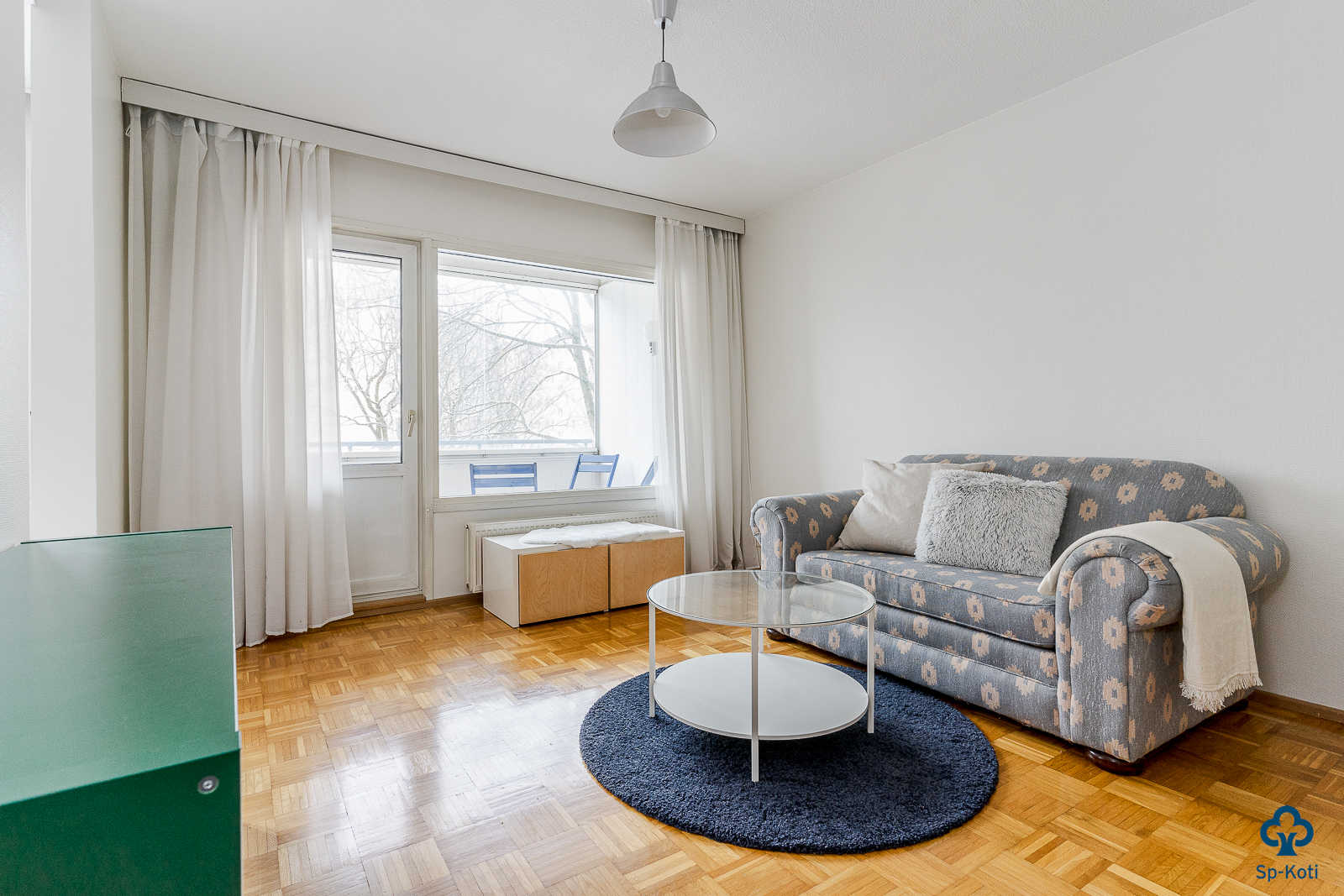 Onnistuneen pohjaratkaisun ansiosta tämä koti tuntuu neliöitään (40,5 m²) huomattavasti suuremmalta. Olohuoneeseen mahtuu isokin sohva, sillä makuualkovi ja erillinen keittiö vapauttavat olohuoneen kokonaan oleskelulle. Makuualkoviin mahtuu parivuode. Keittiö on juuri remontoitu todella laadukkaasti, sävyt ovat greigeä ja harmaata. Keittiössä on kaapistojen ja kodinkoneiden lisäksi uusittu lattia (vinyylikorkki) ja valaistus. Eteisen komerot ja vaatehuone tarjoavat poikkeuksellisen hyvät säilytystilat. Eteisen komeroiden ovet on juuri uusittu. Kylpyhuone on tilava ja pesukone mahtuu sinne hyvin, myös pesukone sisältyy kauppaan. Oma sauna tarjoaa lempeät löylyt. Parveke on todella tilava ja lasituksen ansiosta se palvelee keväästä syksyyn mukavana olohuoneen jatkeena.