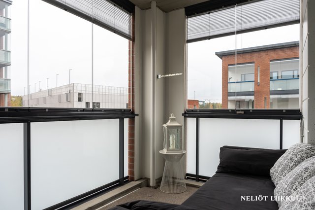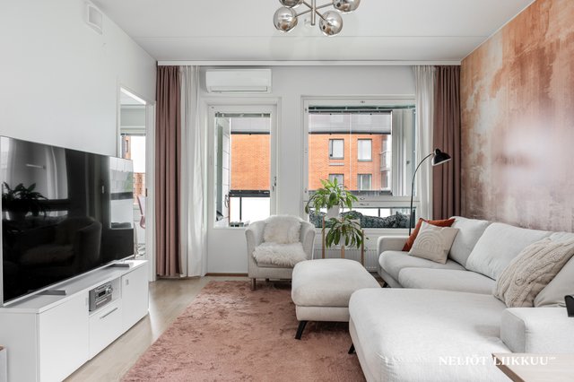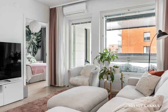- Valoisa olohuone, josta käynti lasitetulle parvekkeelle. Ilmalämpöpumppu (2022 asennettu)