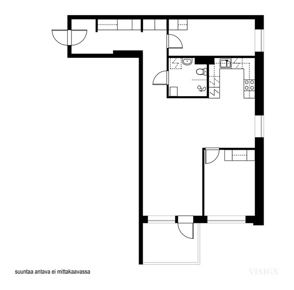 - Keittiöstä ja 1 makuuhuoneesta itään, parkkialueelle. Olohuoneesta ja 1 makuuhuoneesta etelään, yhtiön piha-alueille. Parveke aukeaa itään/etelään parkkialueelle ja piha-alueille.