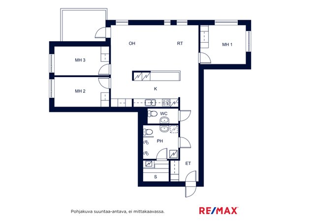 - Olohuone keittiön yhteydessä, kulku parvekkeelle.