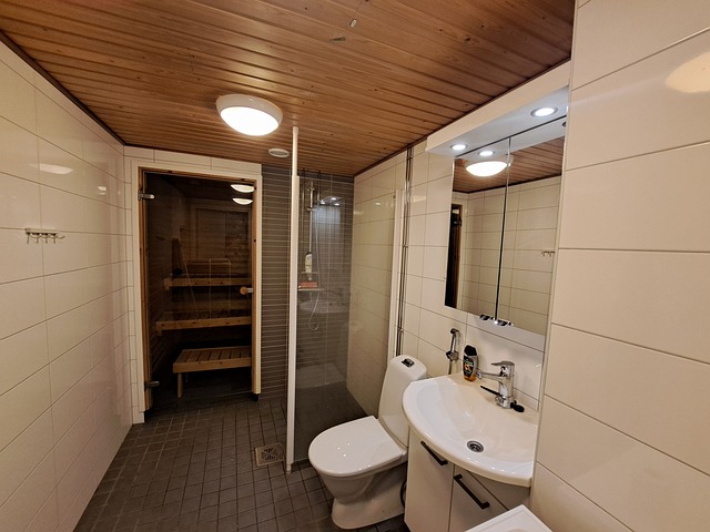 - Suihku, lattialämmitys, suihkuseinä, wc-istuin, peilikaappi, pesukoneliitäntä, ja kiinteät valaisimet