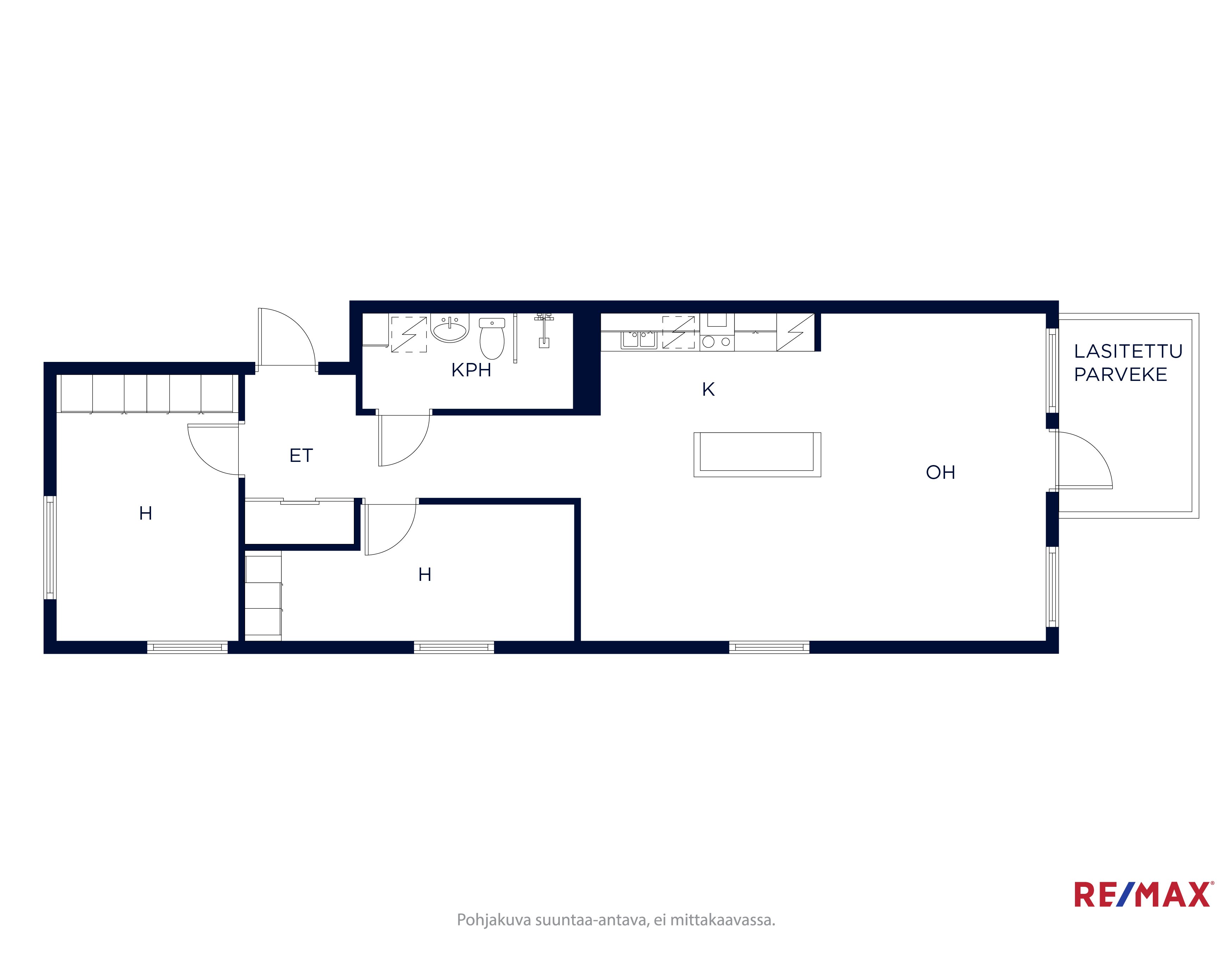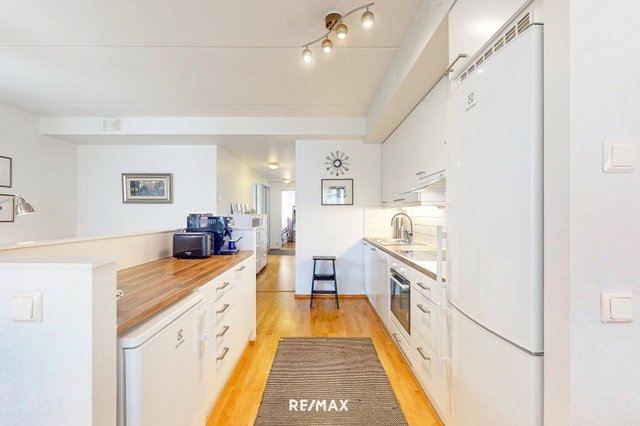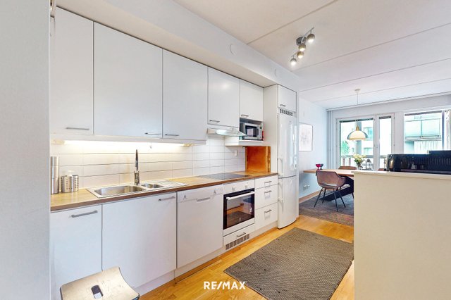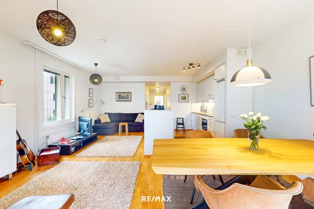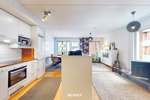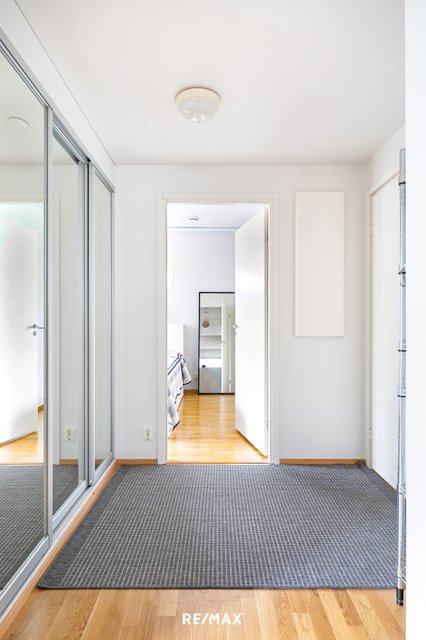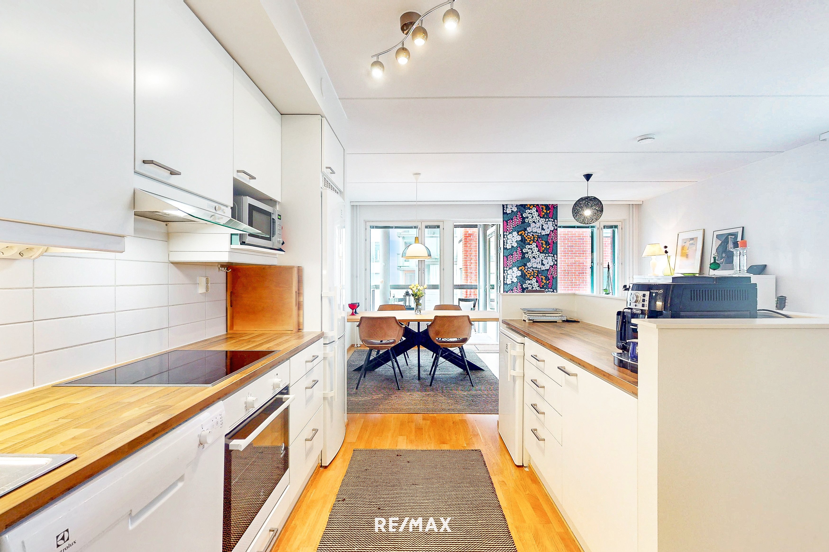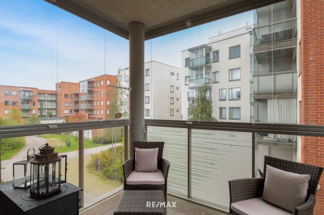 Avara olohuone yhdistyy lasitettuun parvekkeeseen, joka toimii mukavana lisätilana ympäri vuoden. Moderni keittiö on hyvin varusteltu ja tarjoaa oivat puitteet ruoanlaittoon sekä yhdessäoloon. Kaksi makuuhuonetta tarjoavat niin rauhallisen levähdyspaikan kuin tarvittaessa tehokkaan työtilankin. Runsaat kaapistot takaavat riittävän säilytystilan.