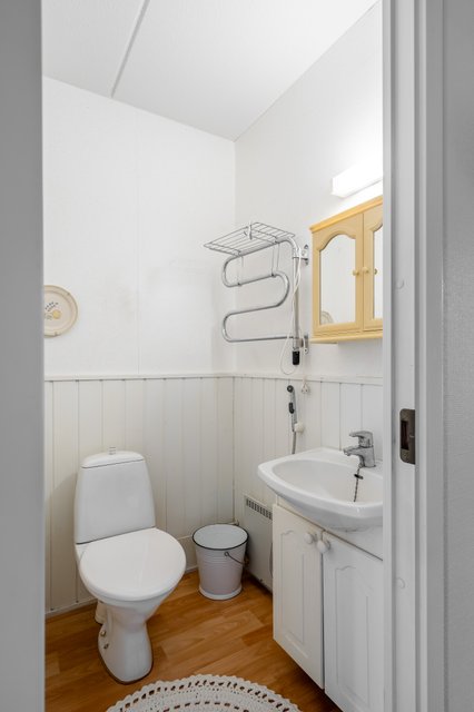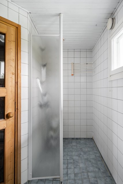 - WC-istuin, suihku, suihkuseinä, pesukoneliitäntä, lattialämmitys, peilikaappi, pesuallas, allaskaappi, ja bidee-suihku