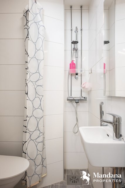 Asunnon 24,1 neliötä on käytetty tehokkaasti ajatellen arjen sujuvuutta. Pesukoneelle löytyy tila eteisen syvennyksestä. Kylpyhuonneessa on miellytävä lattialämmitys.