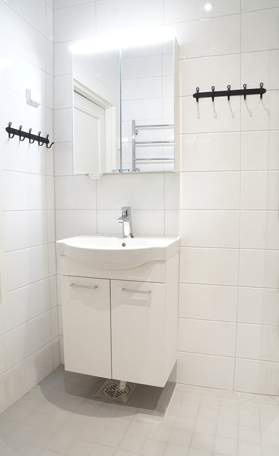 - WC-istuin, pesuallas hanalla, allas- ja peilikaappi. Seinät kaakelia ja lattia klinkkeriä (läpivärjätty).
