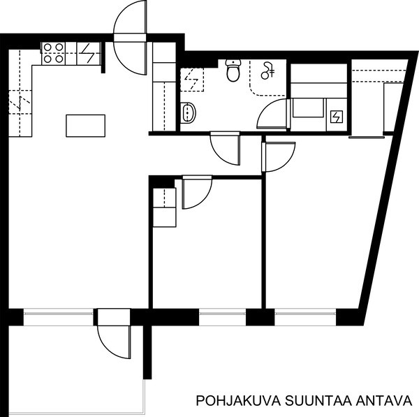 Tässä kodissa on käytännöllinen saarekkeellinen keittiö avautuen olohuoneeseen, josta kulku lasitetulle parvekkeelle.