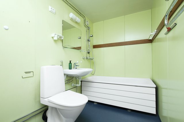 - WC-istuin, pesukoneliitäntä, kylpyamme, peili, bidee-suihku, suihku, ja wc-istuin