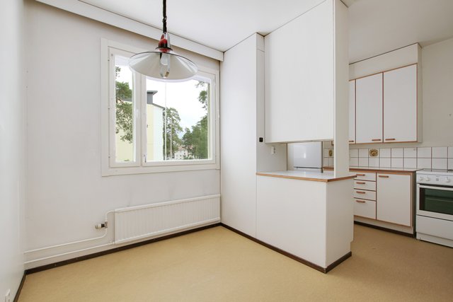 Asunto sijaitsee ensimmäisessä kerroksessa, ja siinä on kaksi makuuhuonetta, olohuone ja erillinen keittiö, jossa on tilaa ruokapöydälle. Olohuoneesta avautuu lasitettu parveke, joka on suunnattu länteen/lounaaseen, tarjoten mukavan paikan nauttia auringonlaskuista. Asunnossa on muovimattolattiat ja tapetoidut seinät, asunto on melko alkuperäisessä kunnossa, joten voit remontoida tästä mieleisesi.