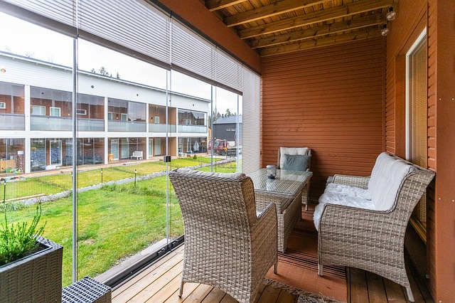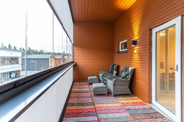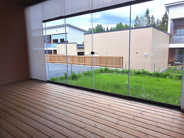 - Lasitetun terassin aurinkoverhot, verhotangot. Lisätietoja sisältyvistä varusteista: kaapistot, kiinteät valaisimet, sälekaihtimet/rullaverhot.