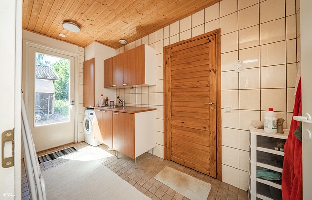 - Kaapistoa, työtasoa, käsienpesuallas, pesukoneliitäntä, lattia ja seinät laattaa.