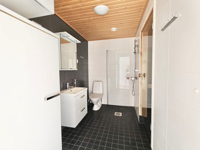 - WC-istuin, suihku, peilikaappi, ja kiinteät valaisimet