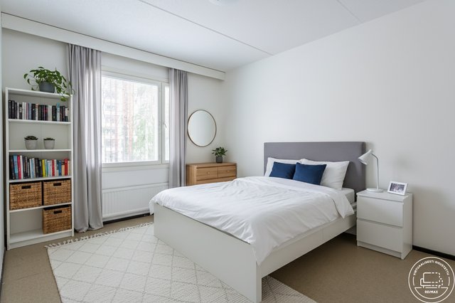 Asunnossa on avara olohuone, josta pääsee suoraan parvekkeelle. Keittiötä päivitetty vuonna 2019, ja siellä on runsaasti kaappitilaa sekä astianpesukone ja mikroaaltouuni helpottamassa arkea. Kaksi makuuhuonetta tarjoavat tilaa perheelle tai työtilaksi. Toisessa makuuhuoneessa on vaatehuone, joka tuo lisää säilytystilaa.