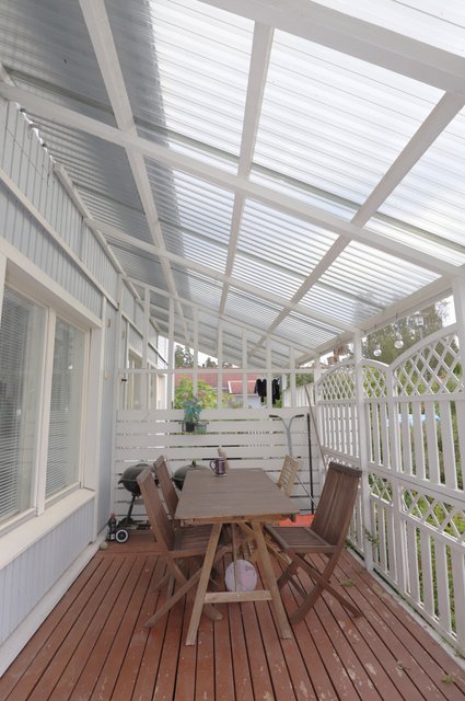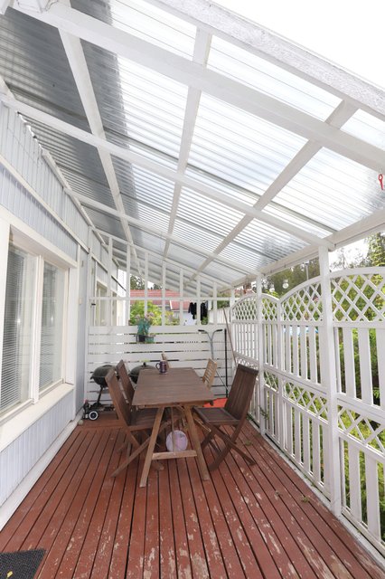 - Osin katettu terassi, jonne mahtuu hienosti ruokapöytä.