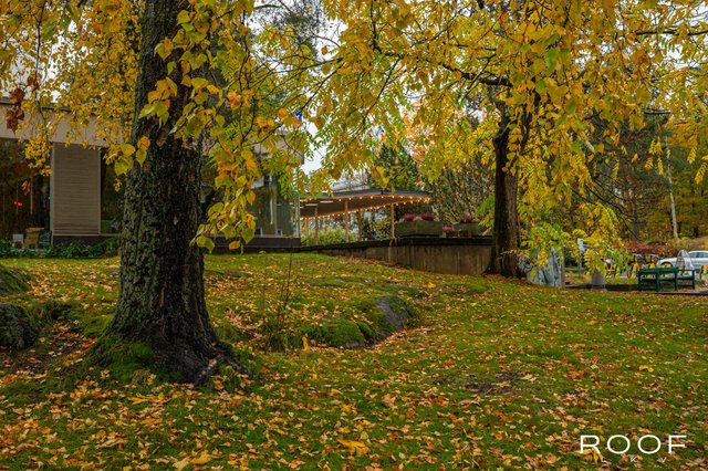 - Metsään rajautuva vehreä puistomainen piha-alue.