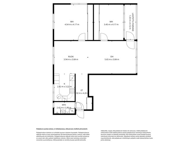 - Yhtiöjärjestyksen mukainen, Isännöitsijäntodistuksen mukainen, (Pinta-ala ei ole tarkistusmitattu ja todellinen pinta-ala voi olla suurempi tai pienempi, kuin ilmoitettu)