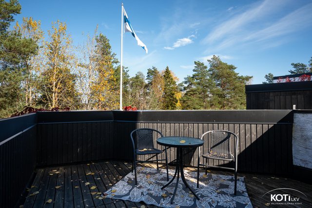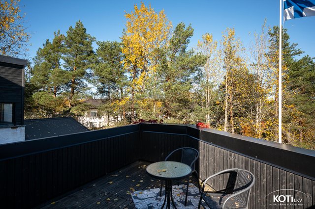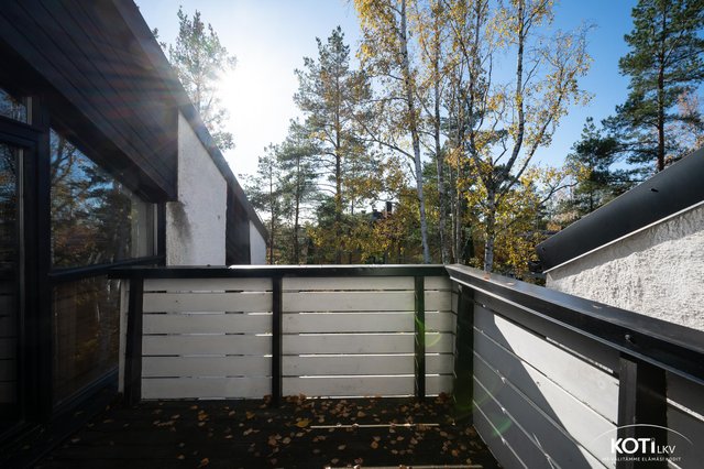 Yläkerrassa on 3 persoonallista makuuhuonetta, joista kahdesta huoneesta on pääsy omalle parvekkeelle esimerkiksi aamukahveja nauttimaan. Yhtiö on rauhallinen ja sijaitsee keskeisellä paikalla merellisessä ja vehreässä Laurinlahdessa. Täältä on vain lyhyt kävelymatka isoon kauppakeskukseen Lippulaivaan, jossa sijaitsee myös metroyhteys Helsinkiin. Päiväkodit ja koulut ovat myös lähellä sekä harrastusmahdollisuudet (mm. kuntosalit, uimahalli, ratsastustalli, jäähalli, venesatama veneilijöille) ja upeat monta kilometriä pitkät kävelyraitit lähtevät rannasta.