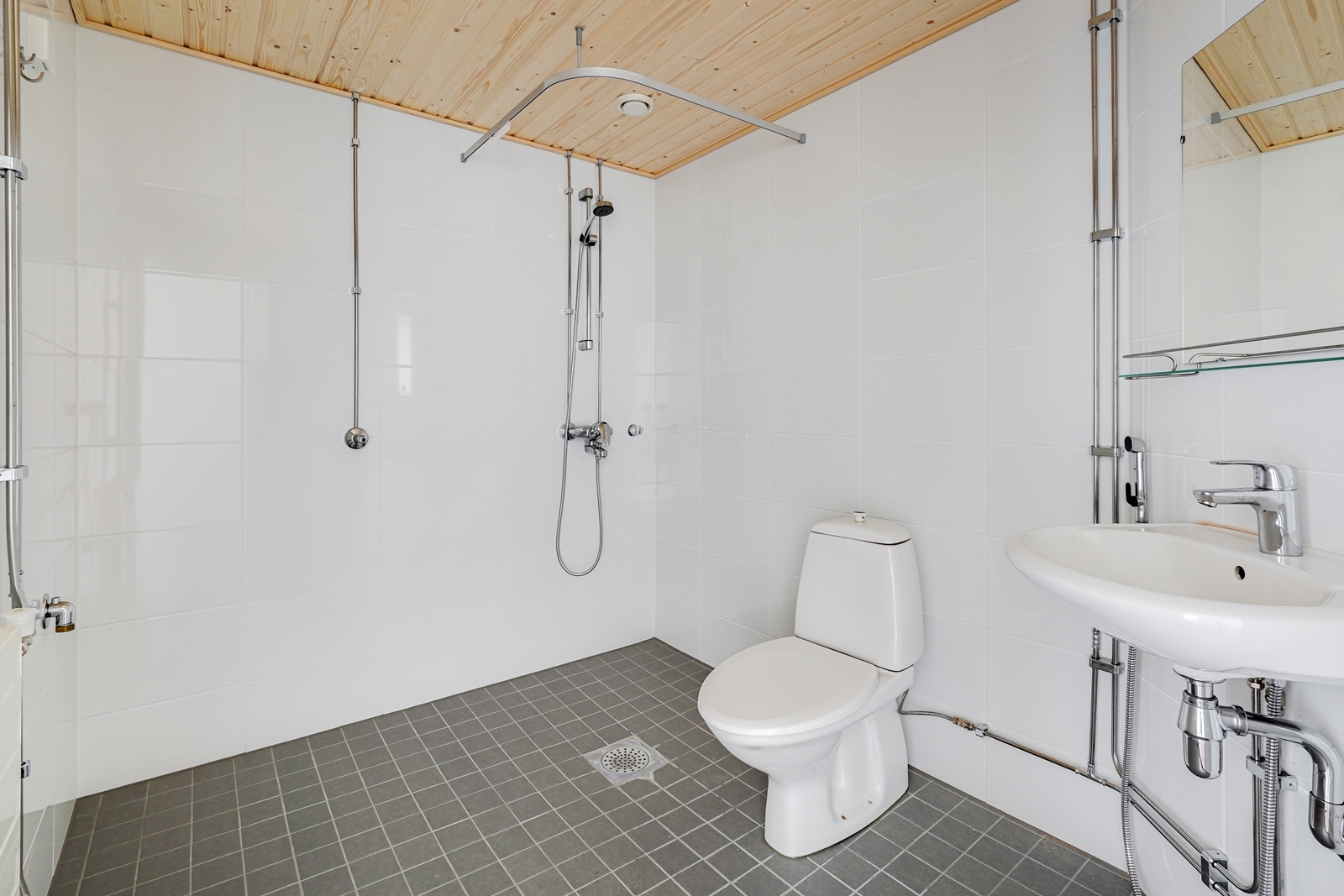 - Suihku, peili, pesukoneliitäntä, wc-istuin, ja kiinteät valaisimet