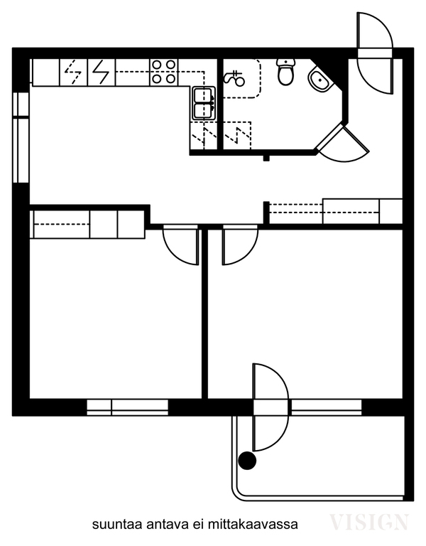 - Pesukoneliitäntä, wc-istuin, suihku, peili, ja kiinteät valaisimet