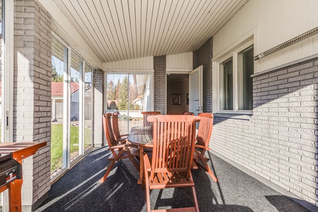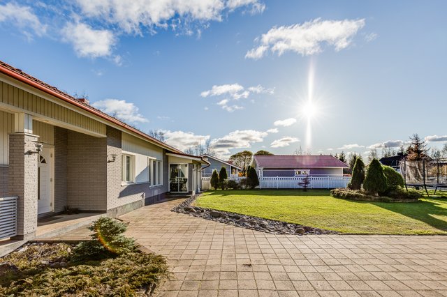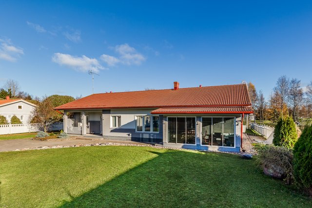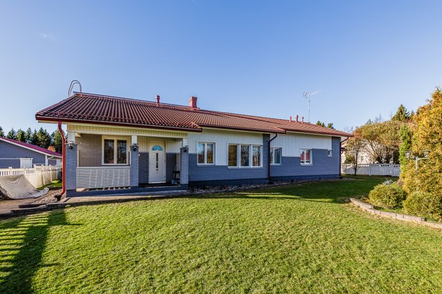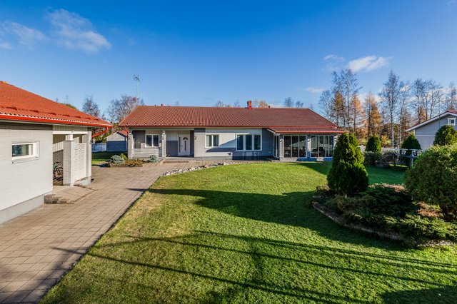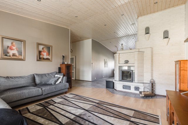 Talossa on todella toimiva pohjaratkaisu sekä avarat ja valoisat huoneet. Isossa kodinhoitohuoneessa (noin 18 m2) on runsaasti kaapistoja, erillinen kurapiste ja ovi takapihalle. Tilavat keittiö/ruokailutila ja olohuone, joiden yhteydessä massiivinen varaava takka/leivinuuni. Talossa on neljä makuuhuonetta. Huoneita on alunperin ollut viisi. Tämä viides makuuhuone on mahdollista saada takaisin kohtuullisen helposti, kun rakentaa takaisin väliseinän isoimpaan makuuhuoneeseen. Vuonna 2022 on taloon asennettu vesi-ilmalämmitys, jolla lämpiää myös autotalli.