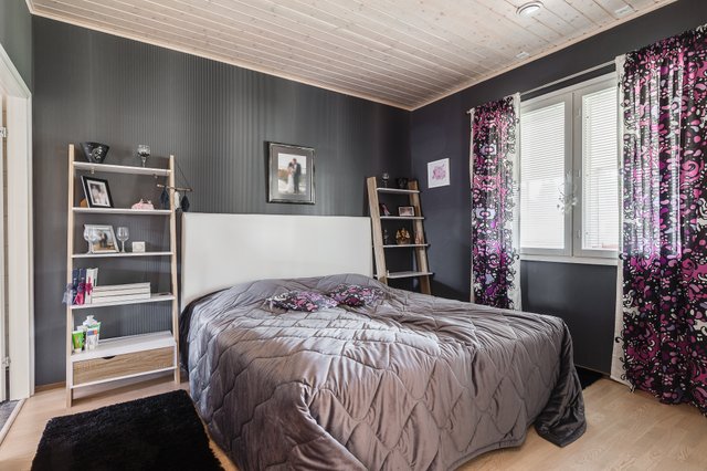 - Kylpyhuone/wc ja sauna puupanelia. Muut tilat valkolakattua puupanelia.