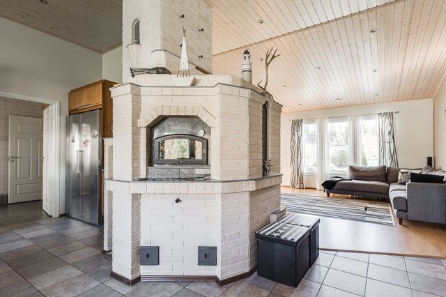 - Ilmavesilämpöpumppu Takka ja leivinuuni. Mahdollista lämmittää myös pelletillä, puulla, sähköllä.