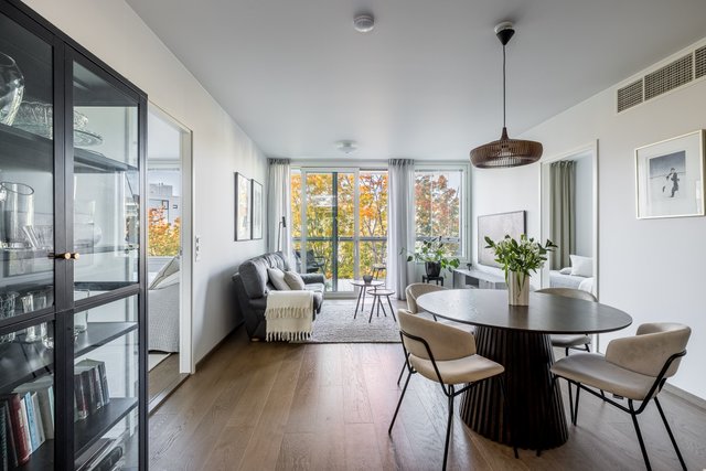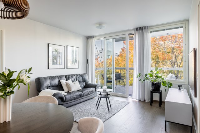 Asunto itsessään tarjoaa avaran ja valoisan pohjaratkaisun, jossa olohuone ja avokeittiö yhdistyvät saumattomasti luoden tilan, joka on ihanteellinen niin arkeen kuin juhlaan. Suuret ikkunat päästävät sisään runsaasti luonnonvaloa ja tarjoavat upeat näkymät sisäpihan puistomaiseen maisemaan. Kylpyhuone on tilava ja hyvin suunniteltu. Kylpyhuoneessa on työtason alla paikka pyykkikoneille ja paljon kaappitilaa sekä tietysti suihku ja wc. Asunnossa on lisäksi vielä erillinen wc. Koko huoneistossa on lattialämmitys ja ilmastointi helpottamassa kesähelteitä. Lasitetulta parvekkeelta on sivunäkymät merelle. Parvekkeelle on asennettu lämmityslaite, joten pystyt käyttämään parveketta pitkälle syksyyn ja aikaisin keväällä.