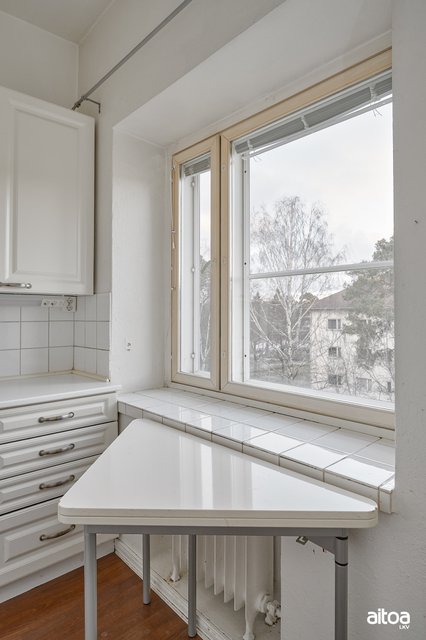 - Pyykinpesukone, sekä ruokapöytä keittiössä.