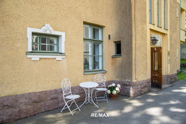 Sijainti pohjakerroksessa luo omakotitalomaisen tunnelman. sopii myös liikuntarajoitteiselle henkilölle. Pienellä terassilla voi nauttia vaikka päiväkahvit.