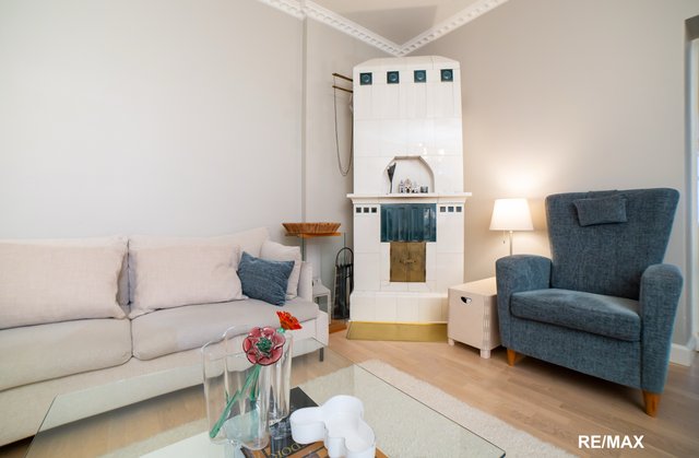 Tässä asunnossa on säilynyt alkuperäinen kakluuni, joka luo olohuoneeseen lämpöä ja tunnelmaa. Huonekorkeus on 295 cm, mikä tekee asunnosta avaran ja valoisan.