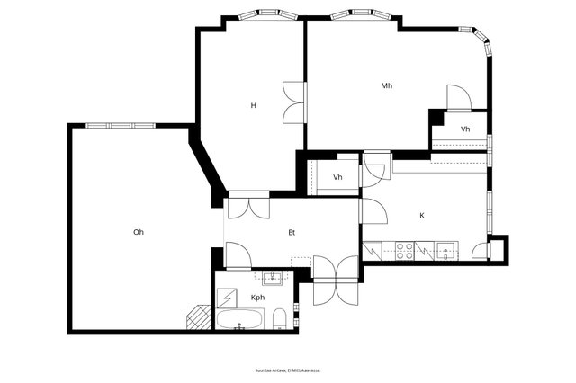 - Ei tarkistusmitattu. Pinta-alat saattavat tämän ikäisissä kohteissa (yhtiö rekisteröity ennen 01.01.1992) poiketa olennaisestikin asuinrakennusten nykyisten mittaustapojen ja standardien (SFS 5139) mukaan laskettavasta asuintilojen pinta-alasta. Pinta-ala voi siis olla edellä mainittua pienempi tai suurempi.