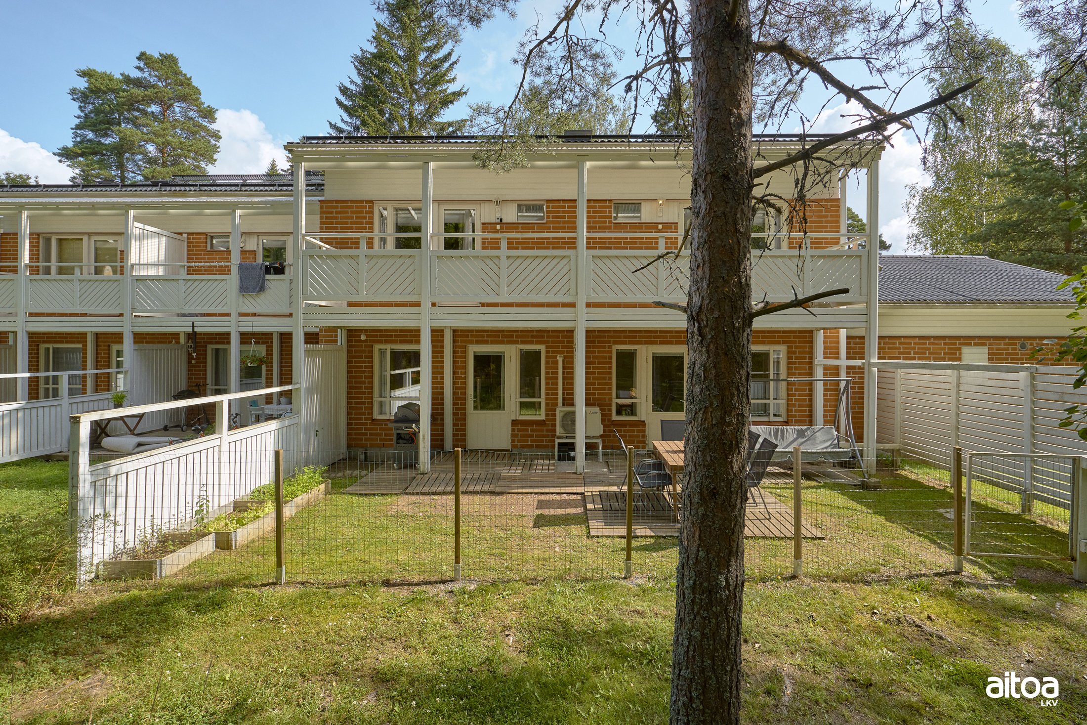 Olohuoneesta on käynti terassille ja yläkerran kahdesta makuuhuoneesta pääsy katetulle parvekkeelle, joissa voi nauttia kauniista kesäilloista.