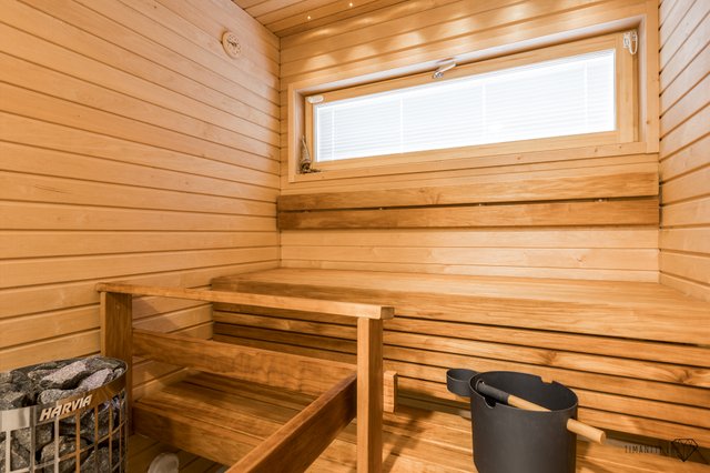 - Lumisaunojen sauna kutsuu rentoutumaan pitkän päivän päätteksi omaan rauhaan. Saunassa Harvian pilarikiuas sekä erillinen ikkuna.
