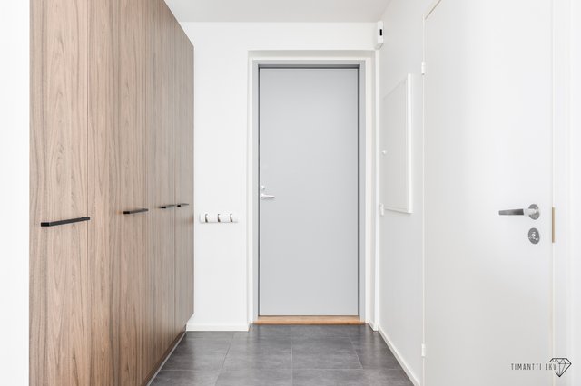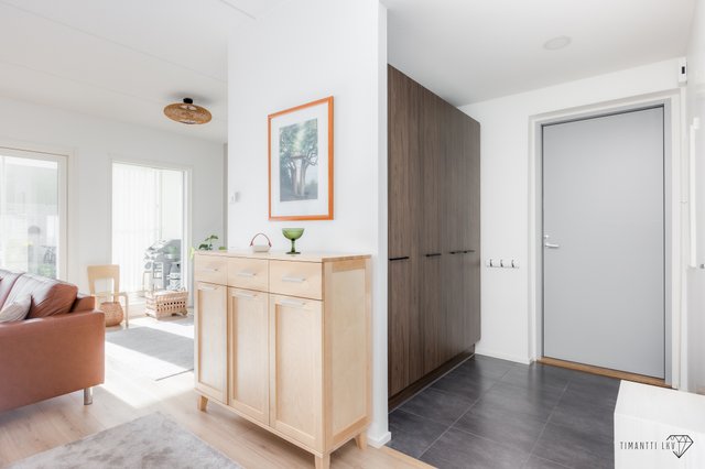 - Reilun kokoinen eteinen, jossa hyvin säilytystilaa. Arkea helpottamassa eteisessä on myös kaunis laatta lattia.