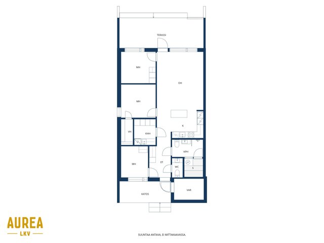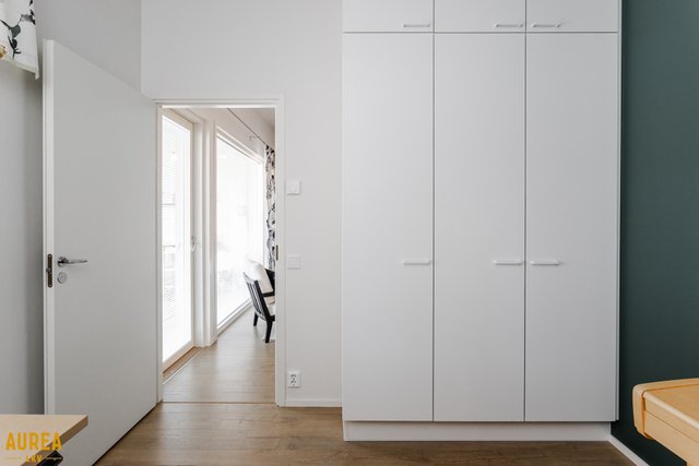 Asunnossa on kolme makuuhuonetta, jotka palvelevat erinomaisesti niin perhettä, etätyötä kuin vierastilantarvetta. Päämakuuhuoneen yhteydessä on käytännöllinen vaatehuone, ja kahdessa muussa makuuhuoneessa on kiinteät kaapistot. Säilytystilaa täydentää lämmin, 5,4 m² ulkovarasto, joka on myös kaukolämmössä.