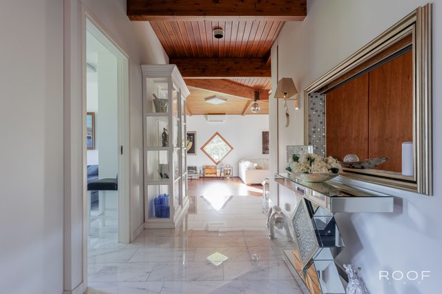 Talon sydän on suuri olohuone, jossa tummat puupalkit ja varaava takka luovat lämpimän tunnelman. Moderni, valkoinen keittiö on varustettu laadukkailla kodinkoneilla ja marmorilattiat tuovat ylellisyyttä. Makuuhuoneita on neljä, mutta tarvittaessa tiloja voi muokata tarpeiden mukaan. Päämakuuhuone on erityisen tilava ja voidaan jakaa kahdeksi erilliseksi huoneeksi.
