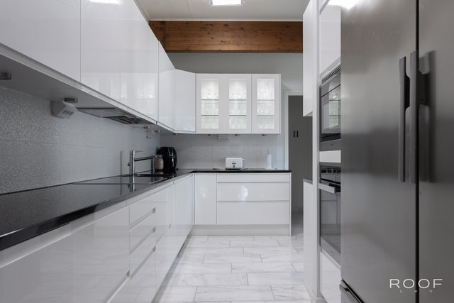 - Kaunis valkoinen keittiö on uusittu vuonna 2016. Varustus: Festivon jääkaappi ja pakastin, Mielen kalusteisiin sijoitetut uuni ja mikroaaltouuni, integroitu astianpesukone, induktioliesitaso, liesituuletin. Työsa kiveä. Lattia marmoria ja seinät laatta/maalattu.
