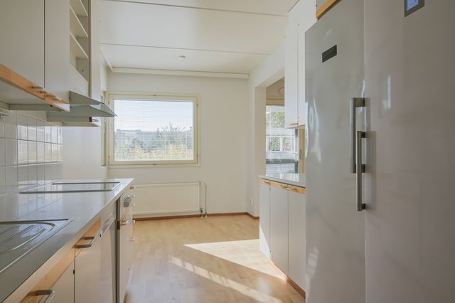 Tässä 93 neliön asunnossa on neljä huonetta, keittiö ja sauna, joten tilaa riittää niin arkeen kuin juhlaan. Olohuoneen ja keittiön parkettilattiat luovat yhtenäisen ja lämpimän ilmeen ja keittiöstä löytyy kaikki tarvittava arjen sujuvuuteen. Asunnossa on myös kaksi WC:tä, mikä helpottaa perheen arkea.
