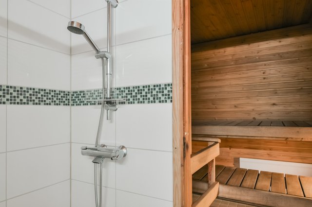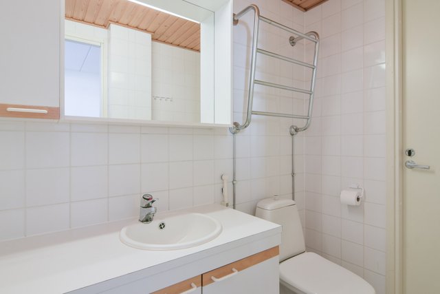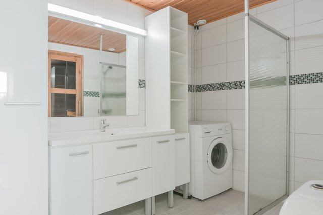 - WC-istuin, suihku, pesukoneliitäntä, peilikaappi, ja pesuallas