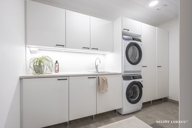- Varustus: kaapistot, pöytätaso, allas, pesukoneliitäntä.
