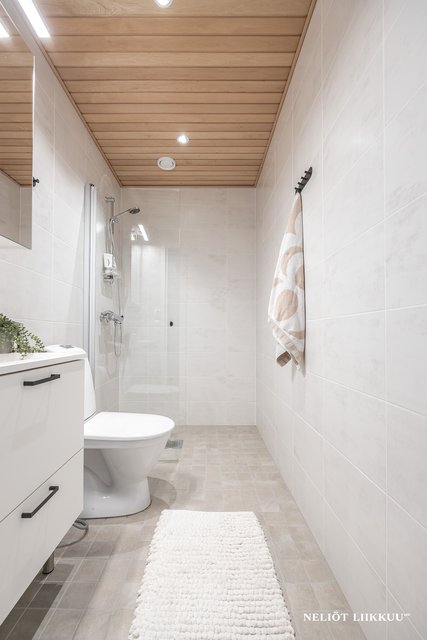 - Varustus: peilikaappi, allas ja allaslaatikosto, wc-istuin, bidee-suihku.
