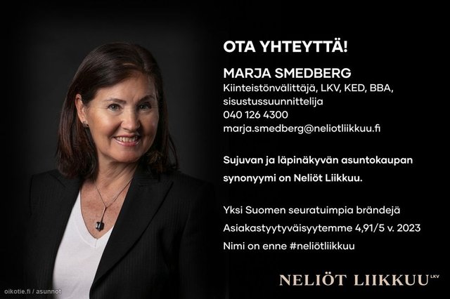 Onko oma asunto vielä myymättä? Pyydä minut maksuttomalle arviokäynnille. Minulla on takana jo satoja asunto- / kiinteistökauppoja. Katso asiakaspalautteeni ja referenssit https://neliotliikkuu.fi/tiimi/marja-smedberg/ ******