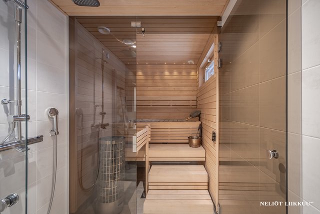 - Puustellin tyylikäs keittiö, upea spa-osasto ja lattialämmitys koko asunnossa