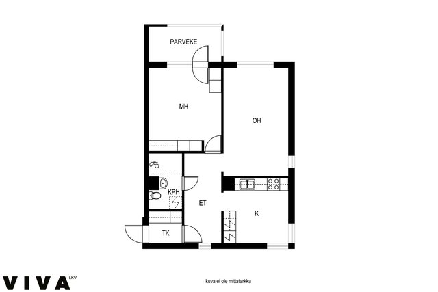 - Pinta-alatieto perustuu isännöitsijäntodistukseen ja yhtiöjärjestykseen. Pinta-aloja ei ole tarkistusmitattu. Pinta-alat saattavat tämän ikäisissä kohteissa (valmistunut ennen 1.1.1992) poiketa olennaisestikin asuinrakennusten nykyisten mittaustapojen ja standardien (SFS 5139) mukaan laskettavasta asuintilojen pinta-alasta. Pinta-ala voi siis olla edellä mainittua pienempi tai suurempi.