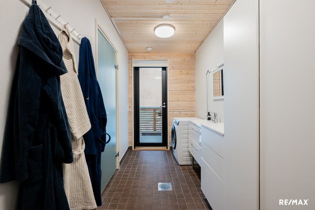 - Erillinen kodinhoitohuone, josta käynti ulos. Pesukoneliitäntä, tasot sekä kaapistot.