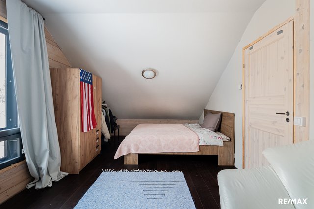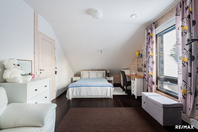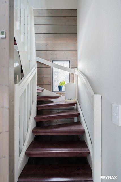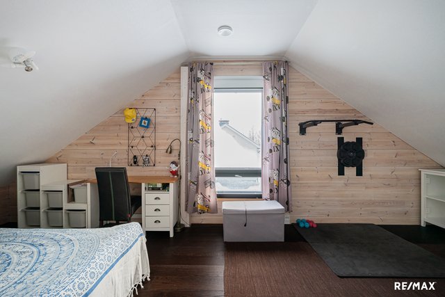 - Kolme makuuhuonetta, joista alakerrassa yksi ja yläkerrassa kaksi makuuhuonetta. Alakerran makuuhuoneessa lattiassa laatta, yläkerrassa parkettilattia.