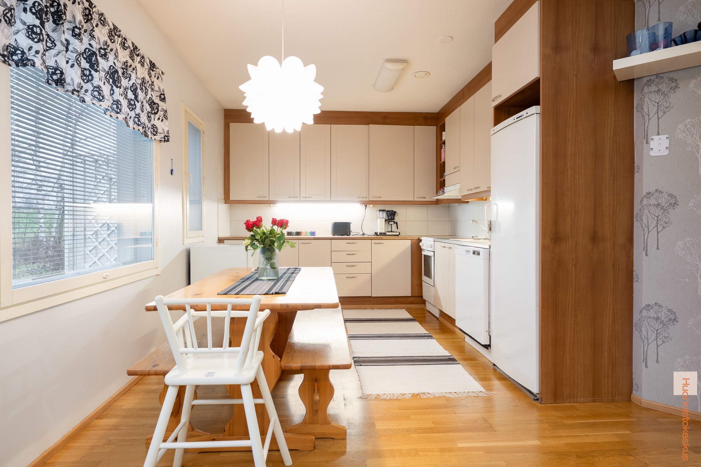 - Jääkaappi, erillinen pakastin, astianpesukone (uusittu kesällä 2025), ja liesituuletin