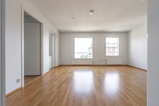 Asunto sijaitsee hissitalon ylimmässä kerroksessa, mikä takaa rauhaa ja esteettömät näkymät.