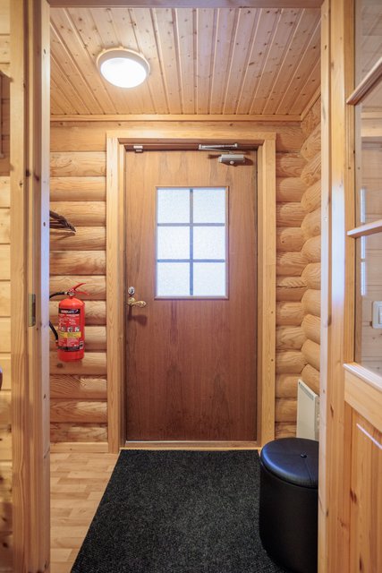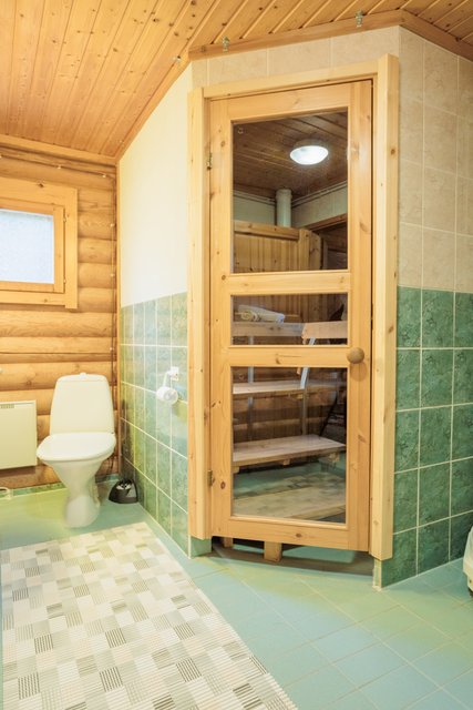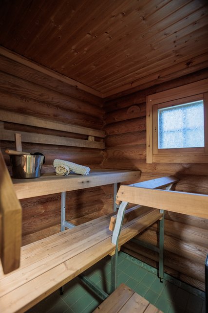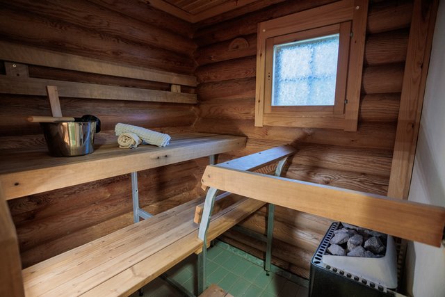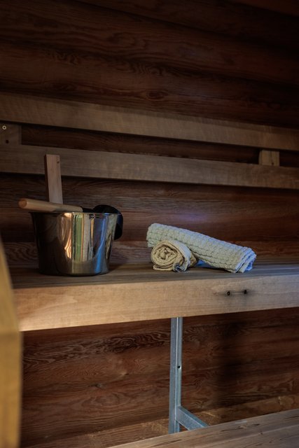 - Mökin saunatilat on varustettu sähköisellä kiukaalla ja tila on muutenkin mukavan kokoinen. Kiukaan hiljalleen napsutellessa kelpaa kipakoista löylyistä nautiskella. Saunaan tulvii luonnonvaloa ikkunan kautta.